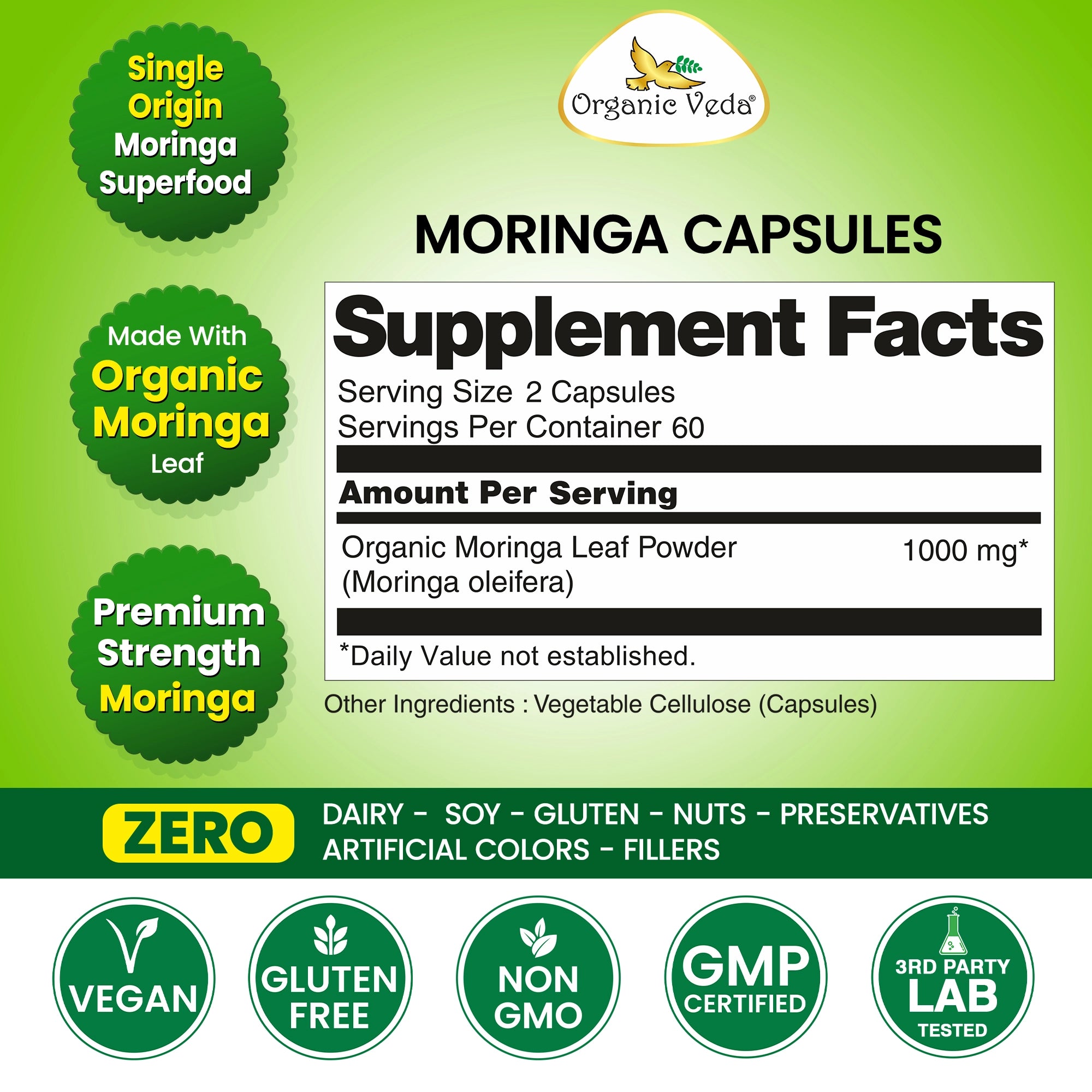 Pure organic Moringa capsules made from nutrient-rich moringa leaves to support energy, immunity, digestion, skin, and overall wellness. One of the best moringa supplements in the USA.